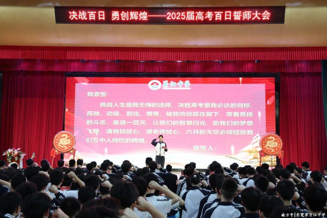 春潮涌动催奋进,战鼓擂响启新程。2月27日下午,东莞市万江中学2025届高三全体师生齐聚学校体育馆,以庄严的仪式、昂扬的斗志,举行“决战百日股票股市平台,勇创辉煌”高考百日誓师大会。这是一场凝聚力量的集结号,更是一曲决胜高考的冲锋令!